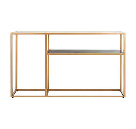 Our expansive console table gets its luxe look from a sleek iron frame finished in luminous gold lacquer