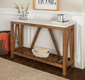 This solid wood console table is made from pine wood, and has a neutral finish that makes it easy to dress up or down