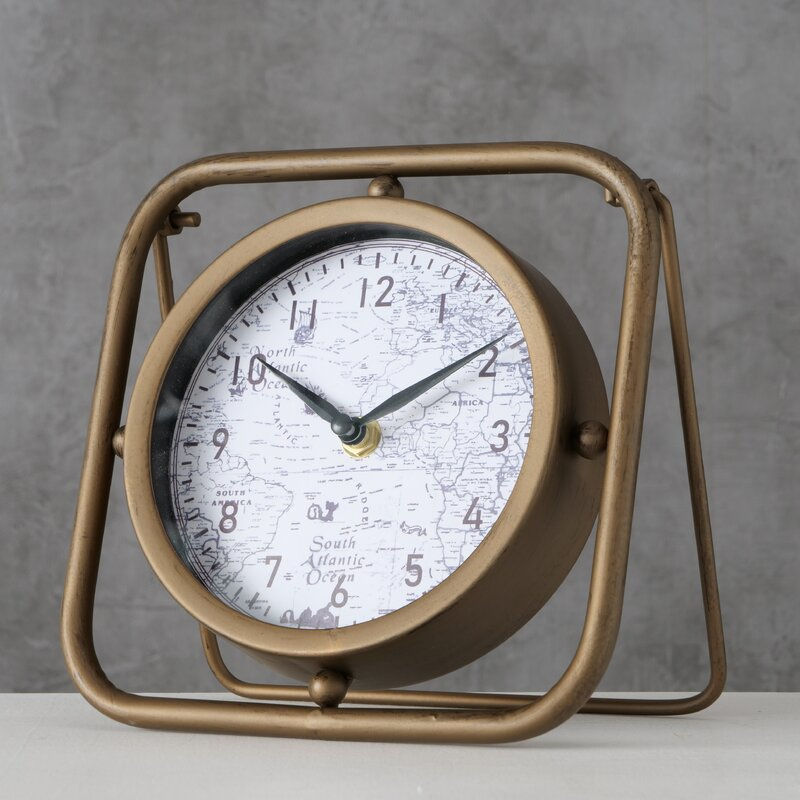 A modern classic, this clock whispers vintage and art deco themes with its rounded corners, circle in the square design, and ball details.