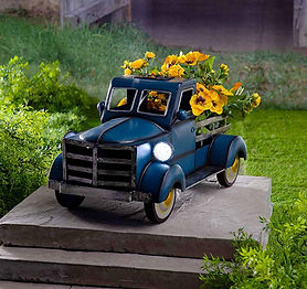 GONEBIN Retro Style Solar Pickup Truck Garden Decoration, Vintage Metal Truck Planter (Blue)